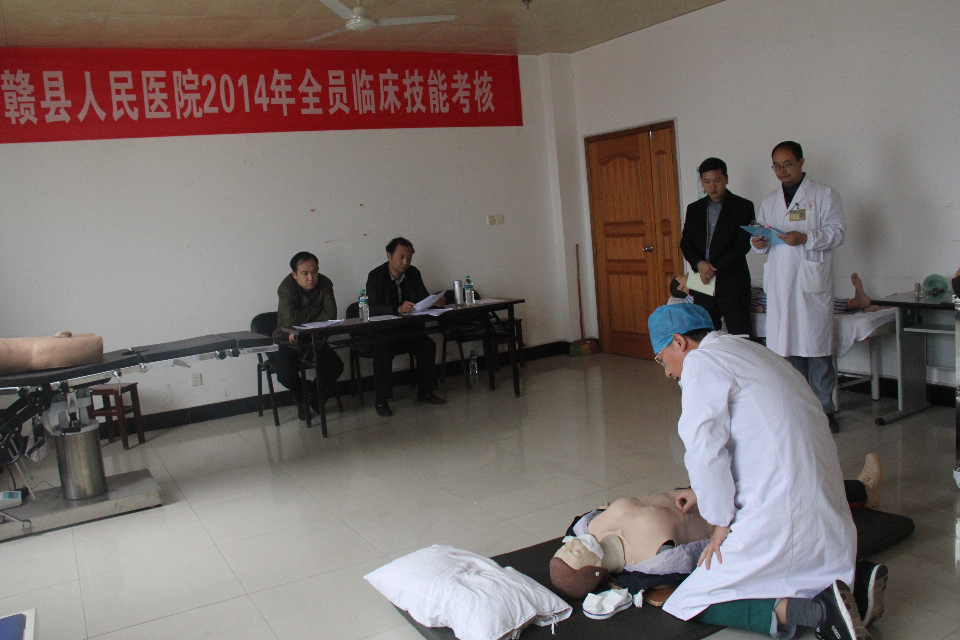 此次临床技能考核分为临床医生技能考核、护理技能大比武以及医技、后勤人员急救技能考核三大部分,采取全体医务人员人人过关、考核比武的形式,内容包括心肺复苏、体格检查、气管插管、各类穿刺、清创缝合、止血包扎、小夹板固定、输氧输液、除颤、吸痰、心电监护等多项临床技能操作。
